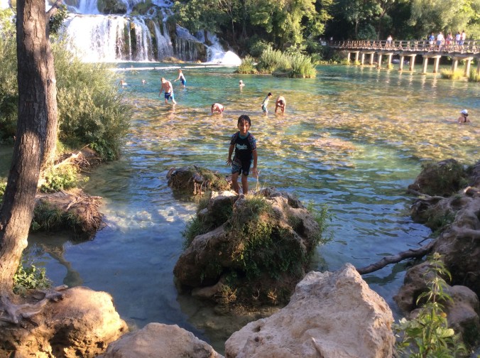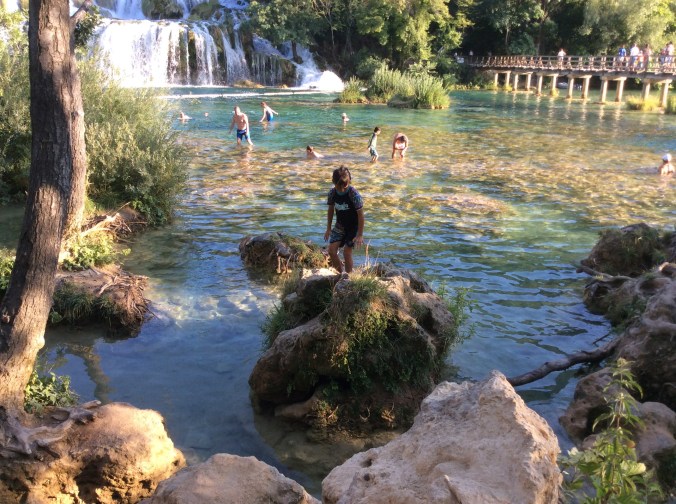 In Scradin we saw waterfalls with such a strong current that they had to put a net to prevent anyone from going too close. We did a small walk around the waterfall before we started swimming on the other side of the net.