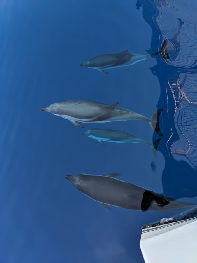 Soon after we saw some fish jumping a few hundred metres from the boat, or at least we thought they were fish…