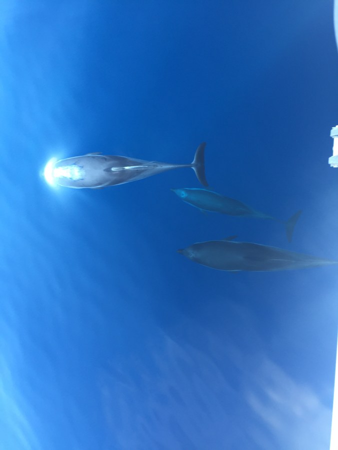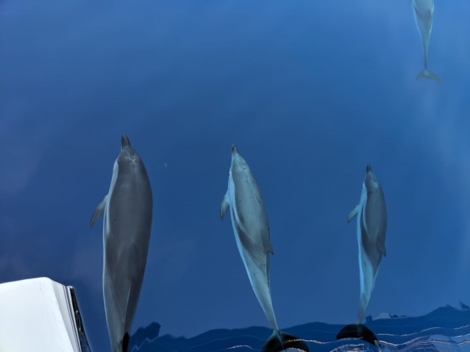 But it was the next best thing- just at the bow (front) of the boat, was a whole pod of dolphins leaping from the water and following us like only dolphins do.